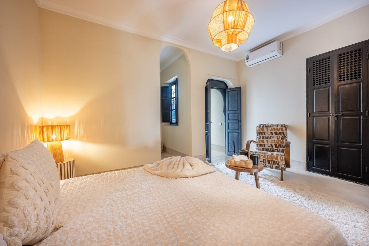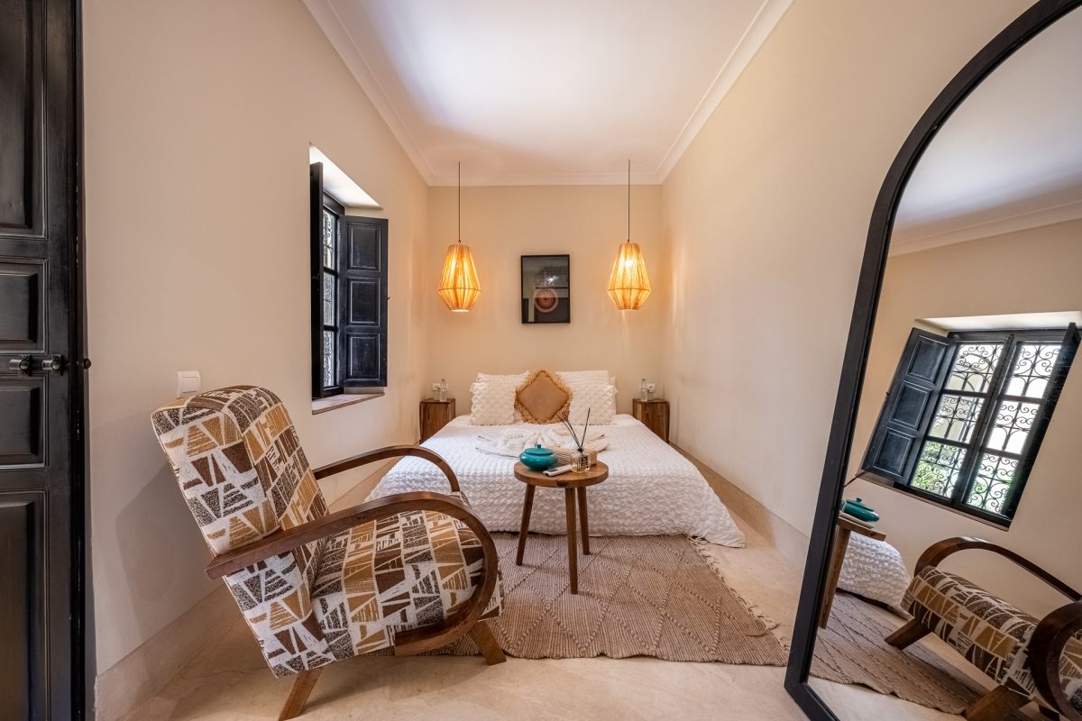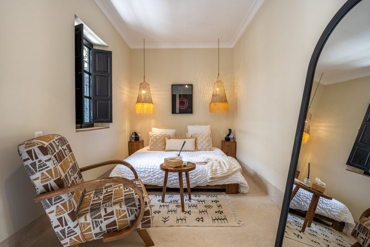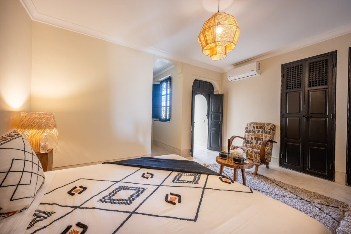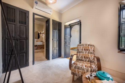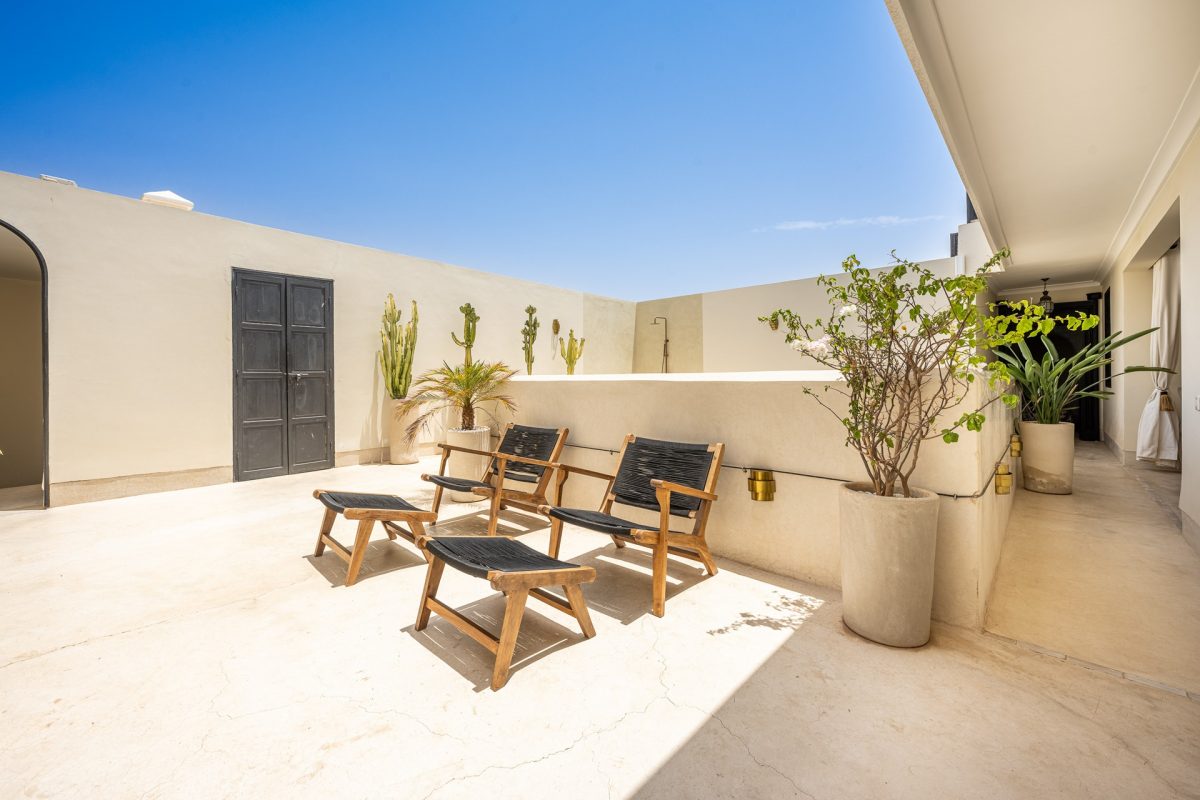 Nestled in the heart of Marrakech’s medina, The Riad is opens onto a luminous patio, where light fills the space and creates a serene atmosphere. An elegant living room invites quiet moments of reflection, while a fully equipped kitchen stands ready for effortless dining. Five air-conditioned suites, each with a private bathroom, offer intimate retreats for guests, blending modern comfort with traditional charm.