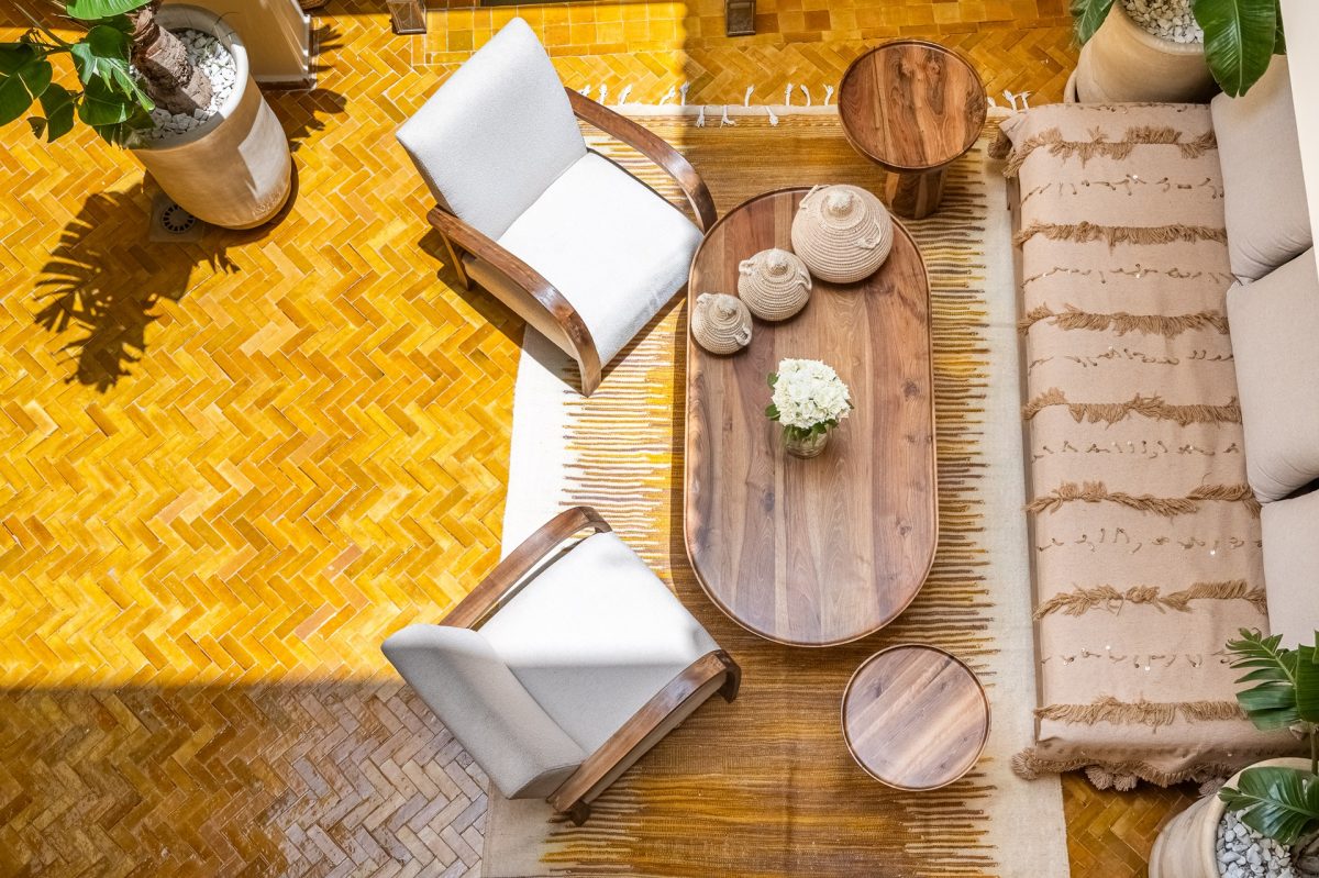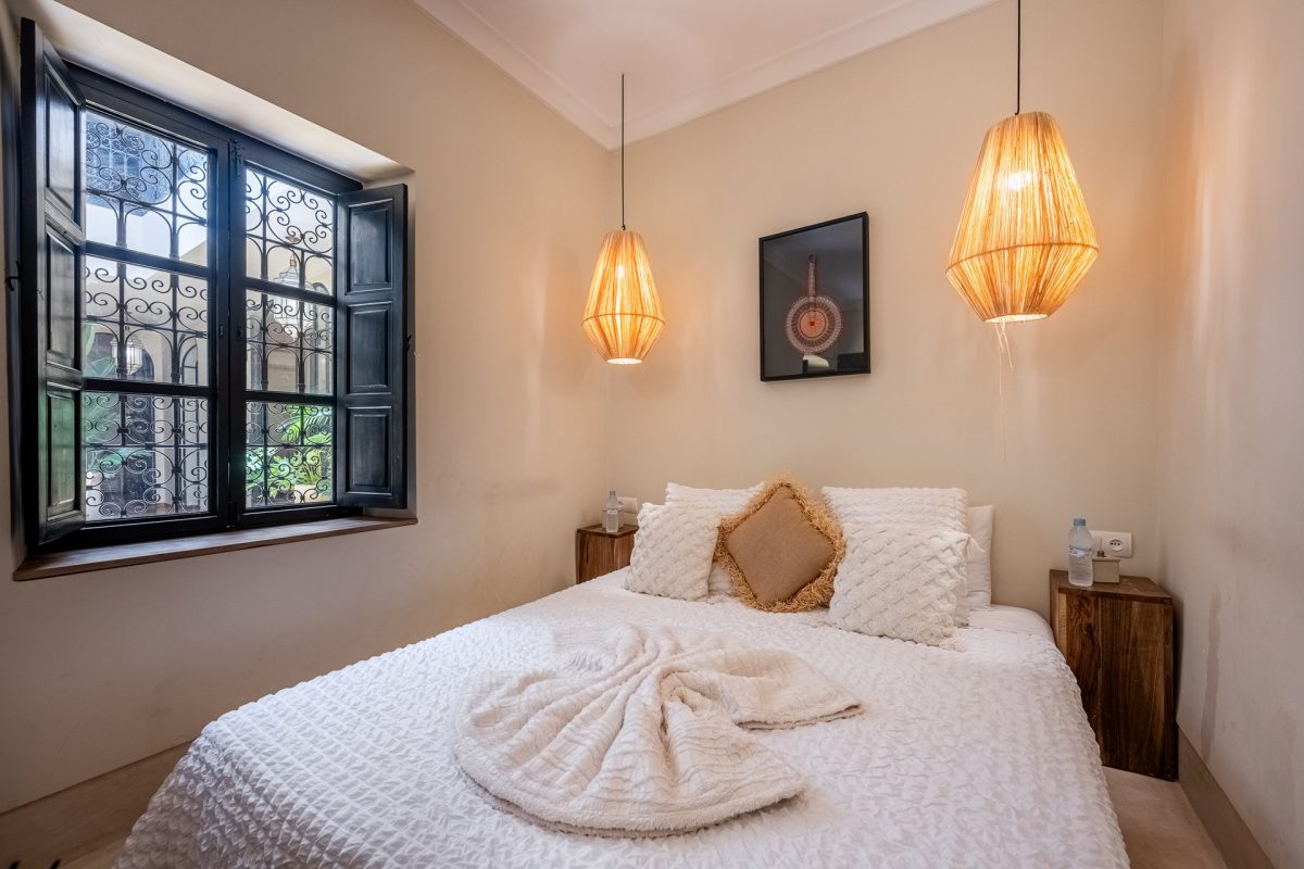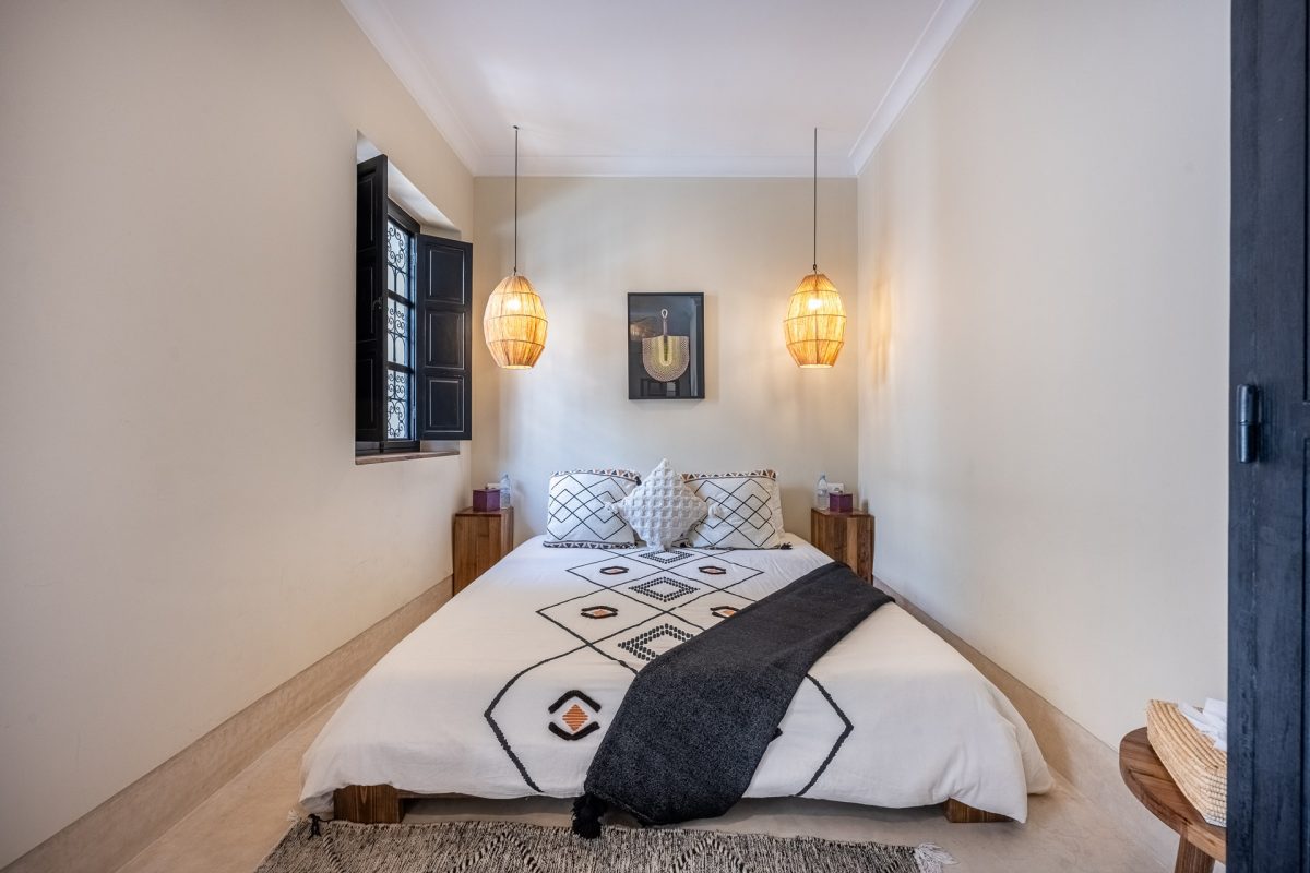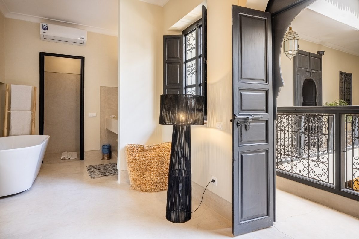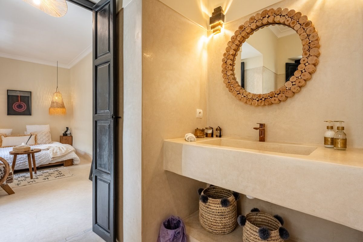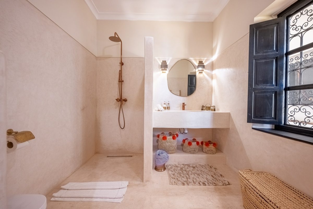 Nestled in the heart of Marrakech’s medina, The Riad is opens onto a luminous patio, where light fills the space and creates a serene atmosphere. An elegant living room invites quiet moments of reflection, while a fully equipped kitchen stands ready for effortless dining. Five air-conditioned suites, each with a private bathroom, offer intimate retreats for guests, blending modern comfort with traditional charm.