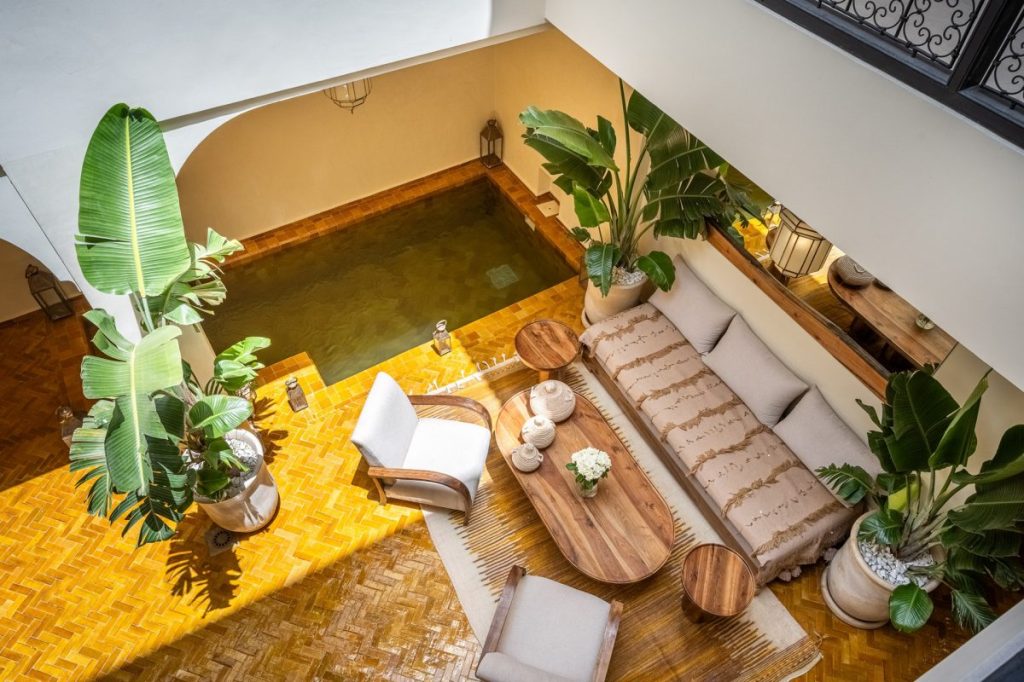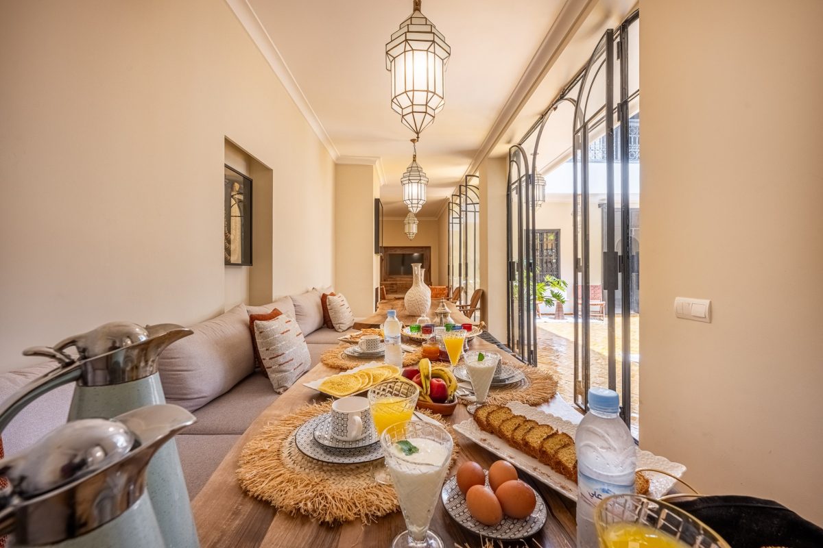 The riad’s private indoor pool and Moroccan spa provide spaces of calm and restoration, where water and warmth meet in gentle harmony. High-speed Wi-Fi, daily housekeeping, and thoughtfully prepared continental breakfasts — including halal or gluten-free options — enhance the experience, ensuring every moment feels seamless and relaxed.